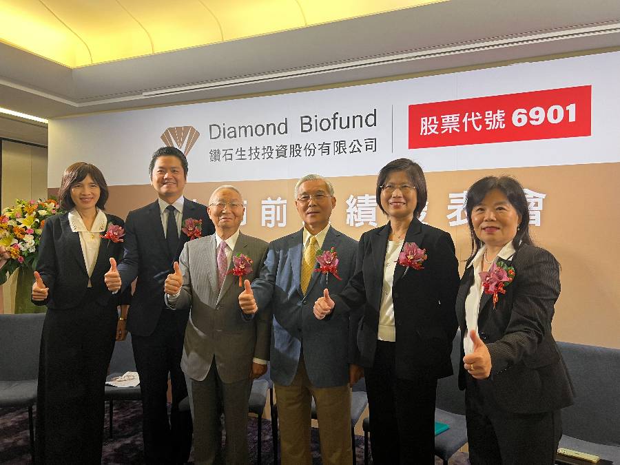 台灣第一家永續型生技創投鑽石生技(6901)今日舉行上市前法說會,並預計9月19日掛牌,董事長路孔明(附圖右三 )指出,公司從早期永續的種子基金出發,靠長期投資累積了第一個百億,初上市現增案募集的資金40億元,將會結合金控、壽險與基金,共同募資百億元,協助將生技研發成果接軌至商業化的最後一哩路。
