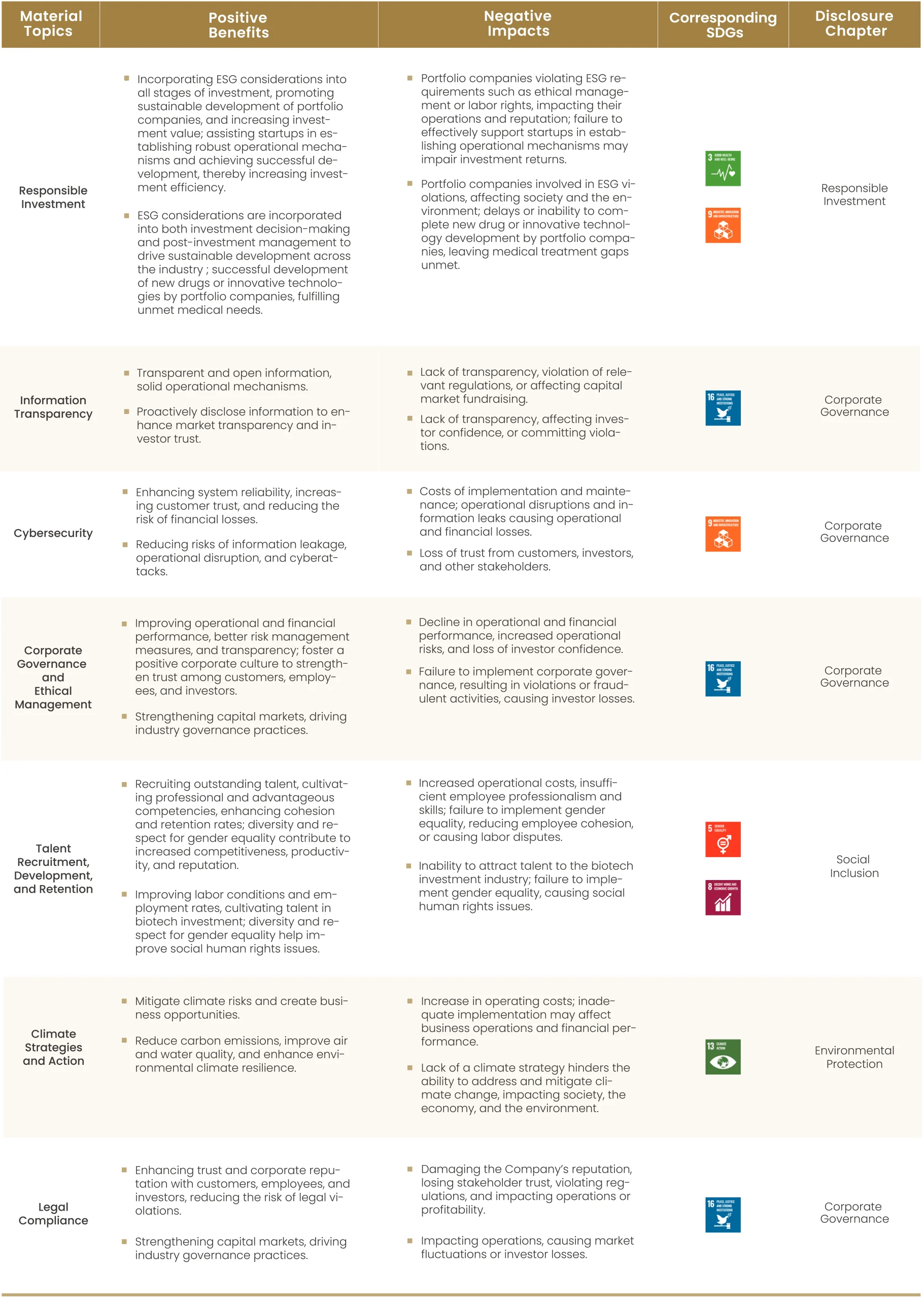 The Company has established management guidelines for the 7 material topics, planning priority actions to respond to the impacts. Indicators and targets will be set to track implementation performance. The Company will continue to engage with stakeholders to understand their expectations and assess the positive benefits and negative impacts generated by the Company. In addition to disclosing the annual materiality assessment in the sustainability report, real-time disclosures will also be made on the Company’s website.