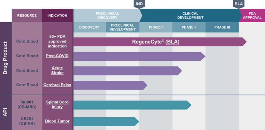 StemCyte has distinguished itself from most of the world’s cord blood banks by sponsoring multiple clinical trials. The currently active StemCyte trials are listed in the table below, and are also displayed in a diagram of their product development pipeline. These clinical trials are harnessing donated cord blood and cord tissue to treat a variety of neurologic disorders.