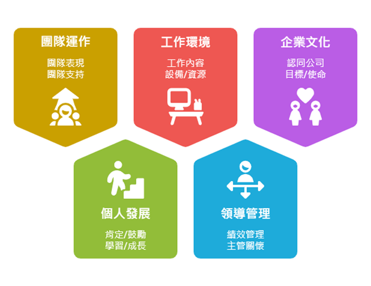 鑽石生技員工滿意度調查問卷主要分為以下五項指標